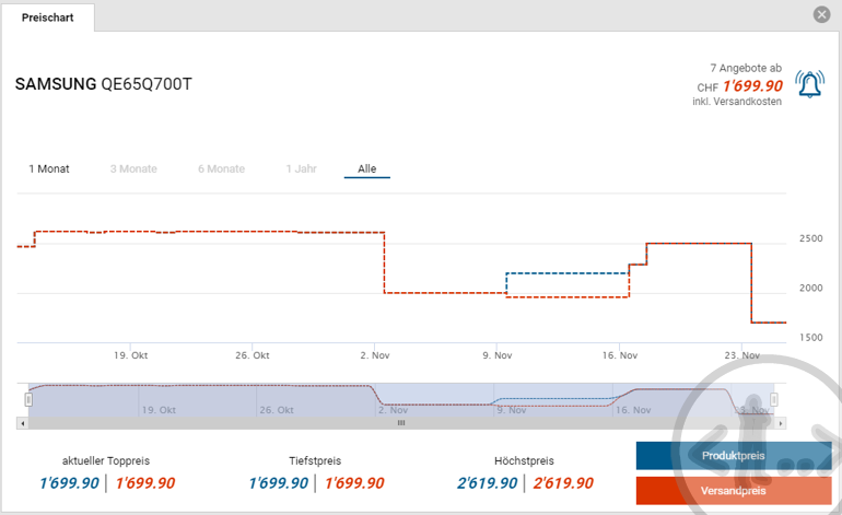 Die Frage die sich natürlich stellt ist, ob die Angebote denn wirklich am Black Friday so lukrativ sind. Wir haben vier Produkte, welche wir in verschiedenen Flyern gefunden haben, auf Toppreise.ch verglichen und unsere – natürlich überhaupt nicht repräsentative – Erhebung zeigt: Es kann sich wirklich lohnen. Gewisse Produkte sind tatsächlich günstiger um den Black Friday – andere hingegen hätten wir bereits früher zu günstigeren Konditionen kaufen können.